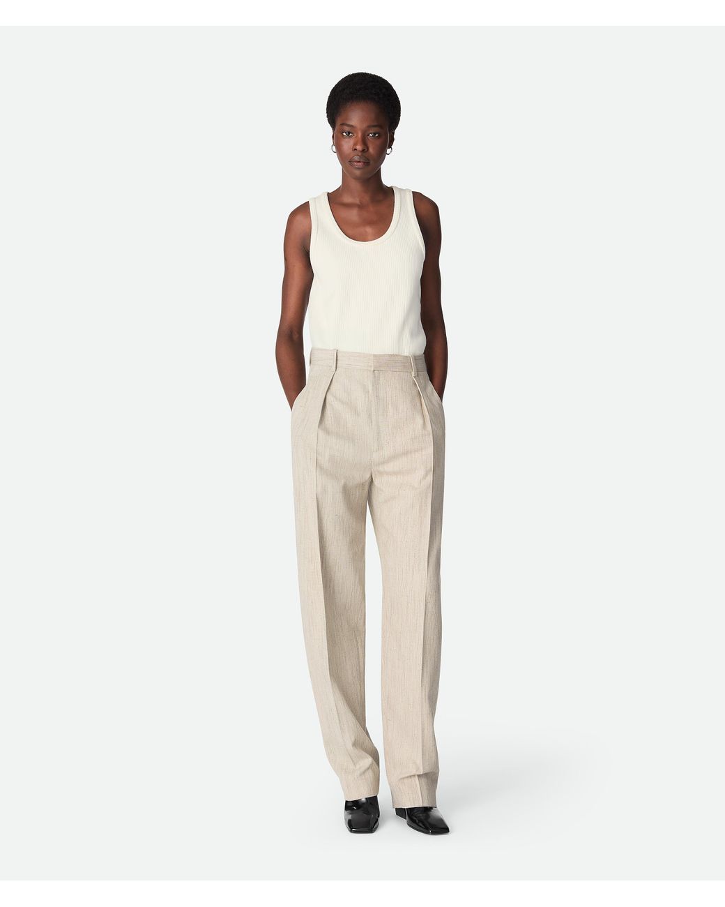 • multicolour viscose and silk trousers • tapered leg • zip, hook and button closure. • Colour: Grey Putty. 56% Viscose, 36% Polyester, 8% Silk.