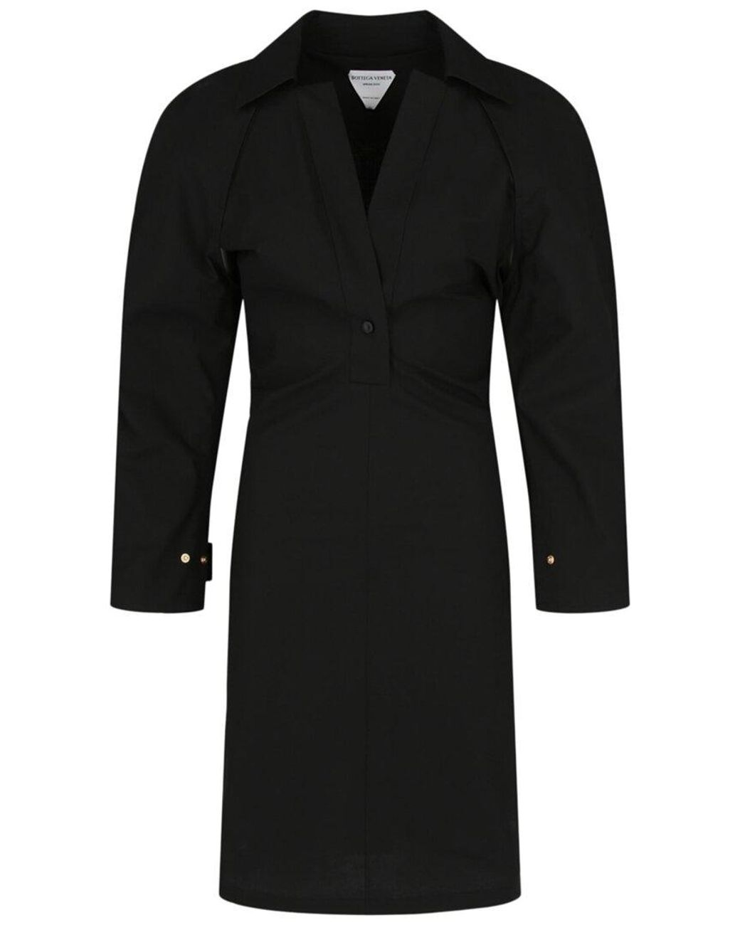 About the brand: Unsurpassed craftsmanship - and that signature woven leather. Color/pattern: black Design details: Collared neckline; Long sleeve; Buttons up; True to size; Long; Trench-style cape back Snap closure Main: 90% Cotton, 10% Polyurethane (PU) Dry clean only Made in Italy Our products are 100% genuine. In some cases we purchase merchandise from trusted independent suppliers and not directly from the brand owner. In all cases we stand by the authenticity of every product sold on our site. Colour: black