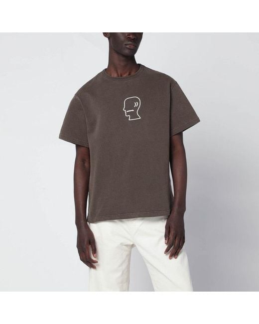 Men's Brown Vintage-Effect T-Shirt With Embroidered Logo