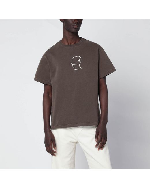 Men's Brown Vintage Effect T Shirt With Embroidered Logo