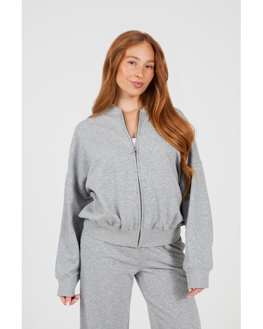 Women's Grey Zip Through Bomber Style Sweatshirt