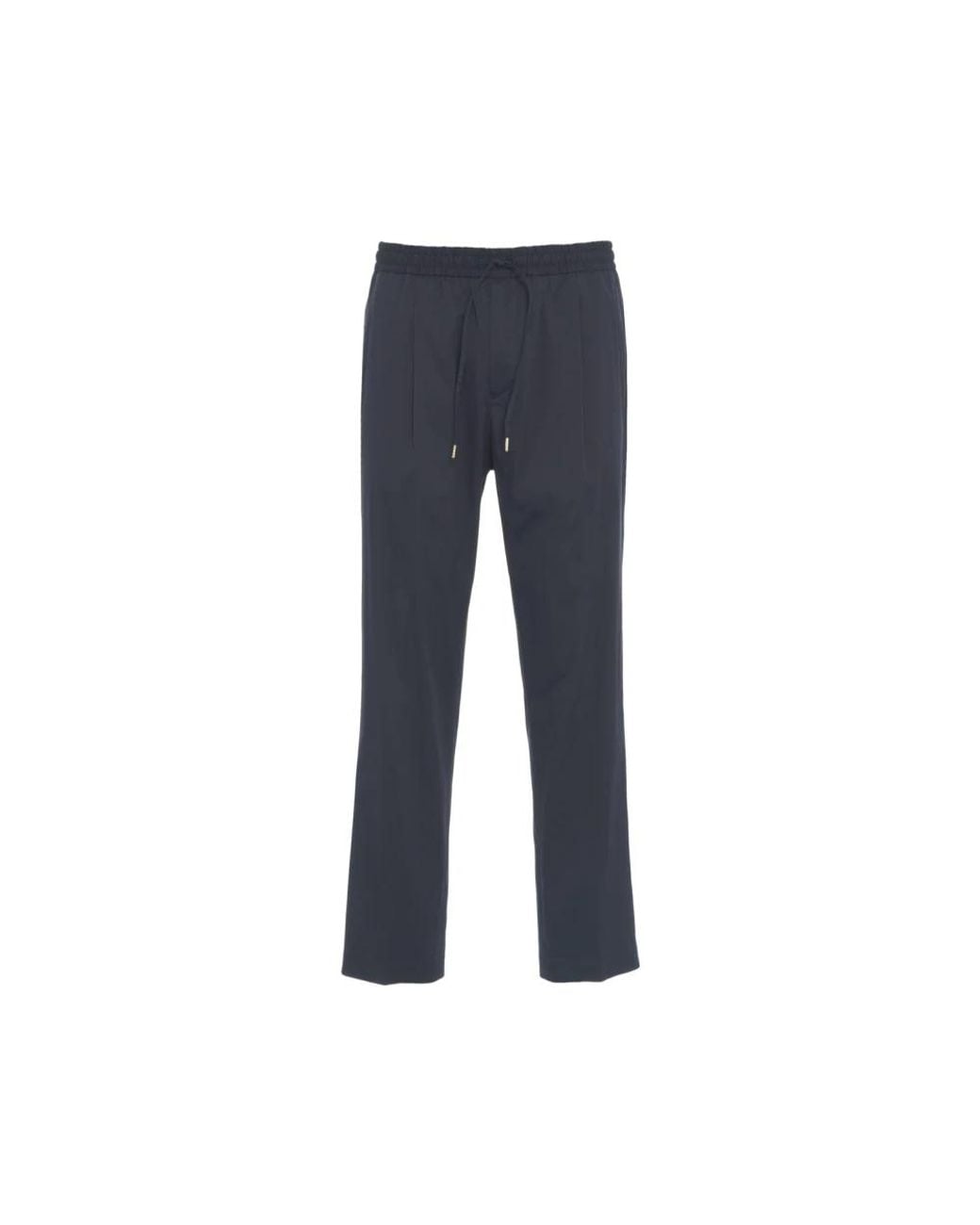 Elevate your casual style with Briglia 'Wimbledons' joggers. These trousers feature a stylish zip closure, pleats, and an elastic drawstring waistband for comfort. With convenient slip and rear welt pockets, they blend sophistication with practicality. Made of 75% cotton, 22% polyamide, and 3% elastane. Model height: 190 cm; Size: 50. Hand wash recommended. Colour: blue