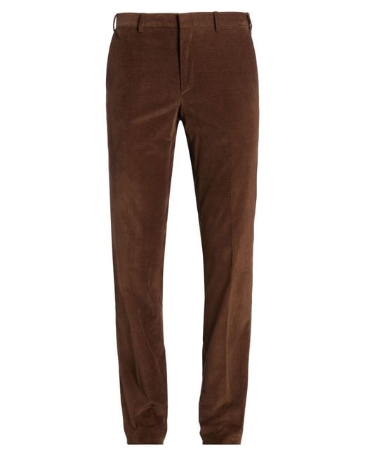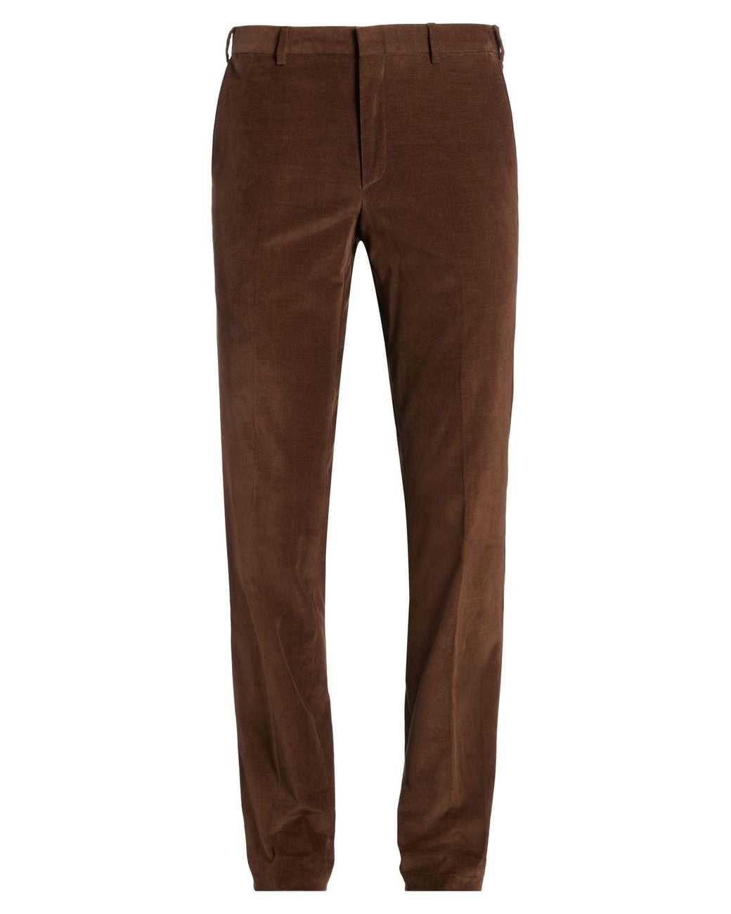BRIONI. chino trousers, corduroy, stretchy fabric, plain colour, no appliqués, high waisted, tapered leg, regular fit, zip fastening, hook fastenings, slit pockets, welt pockets, dry clean, do not bleach, do not tumble dry. 97% Cotton, 3% Elastane. Colour: brown