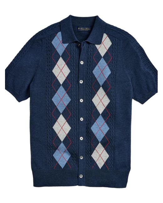 Men's Blue Argyle Cable-Knit Shirt
