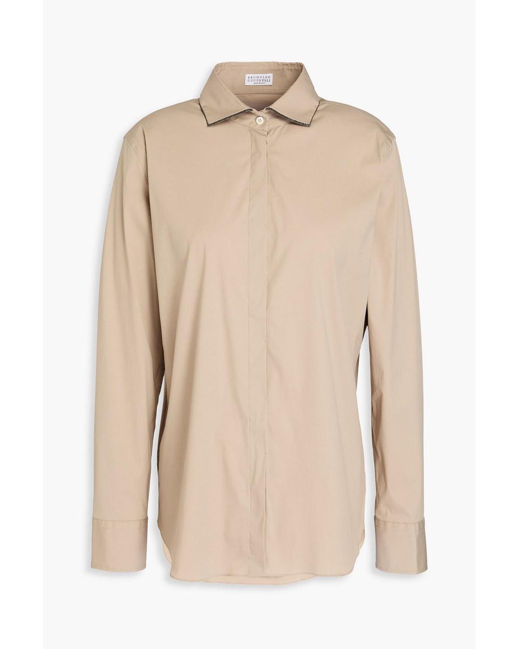 Women's Natural Bead-embellished Cotton-blend Poplin Shirt