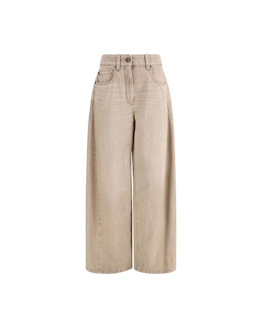The barrel-leg Jeans by Brunello Cucinelli reinterpret classic denim through the brand's refined, understated aesthetic. Crafted with a sculptural barrel silhouette, they feature a traditional five-pocket construction, belt loops, and contrast stitching that enhances the clean lines of the design. A front button fastening completes this elevated everyday essential, blending casual attitude with meticulous craftsmanship. Season: SS26Fit: RegularComposition: 100% Cotton. Colour: natural
