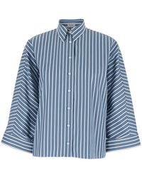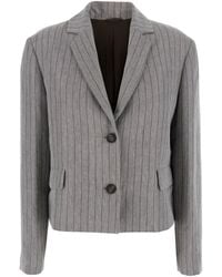Brunello Cucinelli Women's Grey Bermuda Panrs With Off-Centered Button Closure And All-Over Striped Motif