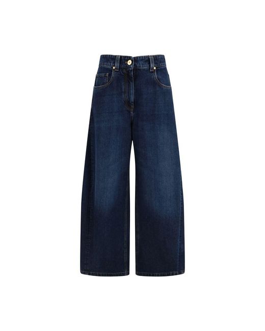 The barrel-leg Jeans by Brunello Cucinelli reinterpret classic denim through the brand's refined, understated aesthetic. Crafted with a sculptural barrel silhouette, they feature a traditional five-pocket construction, belt loops, and contrast stitching that enhances the clean lines of the design. A front button fastening completes this elevated everyday essential, blending casual attitude with meticulous craftsmanship. Season: SS26Fit: RegularComposition: 100% Cotton. Colour: blue