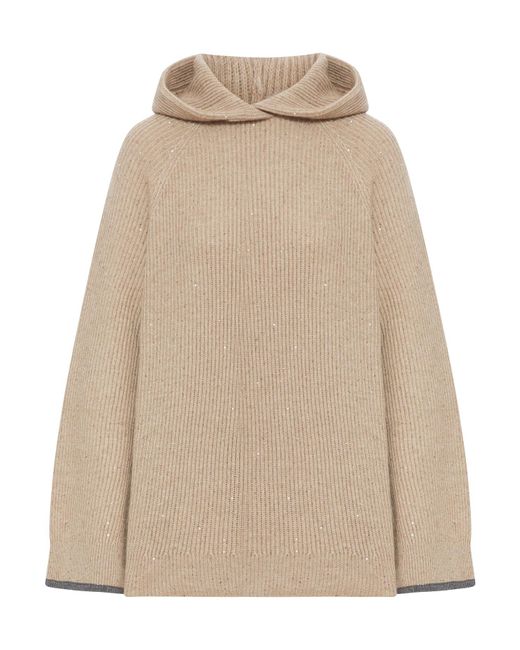 Sequin-Embellished Hooded Cashmere Jumper - Natural