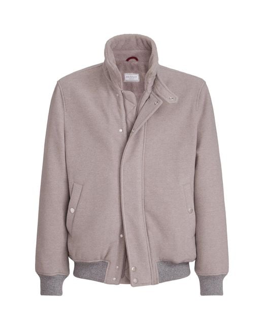 Men's Brown Cashmere Water-Resistant Bomber Jacket