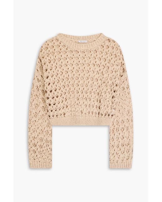 Women's Natural Cropped Open-knit Jute-blend Jumper
