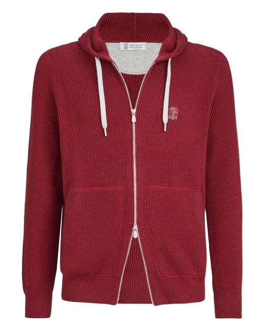 Men's Red English-Rib Two-Way Zip Hoodie