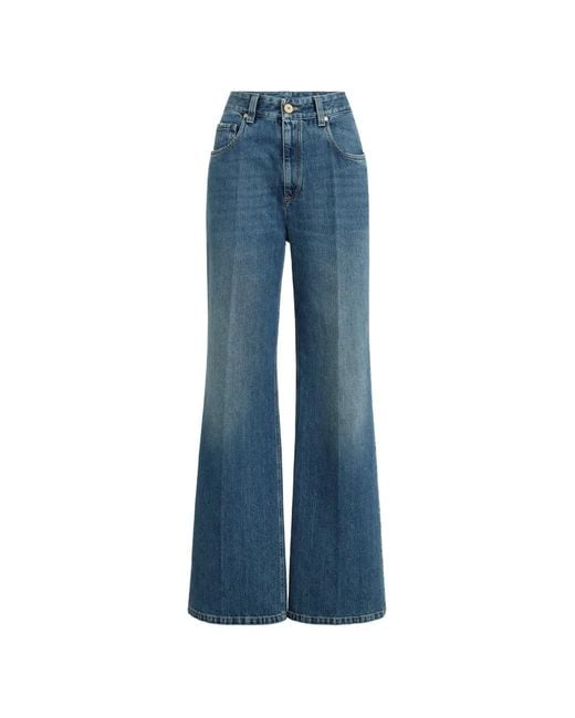 Jeans With Five-Pocket Design And Patch Logo On The Back - Blue