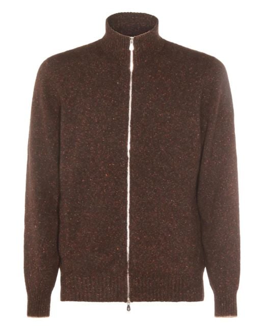 Brown speckled pattern stand-up collar zip front long sleeves ribbed cuffs Size: 50. Gender: Male. Material:Alpaca/Polyamide/Wool/Silk/Cotton/Viscose. Colour: brown
