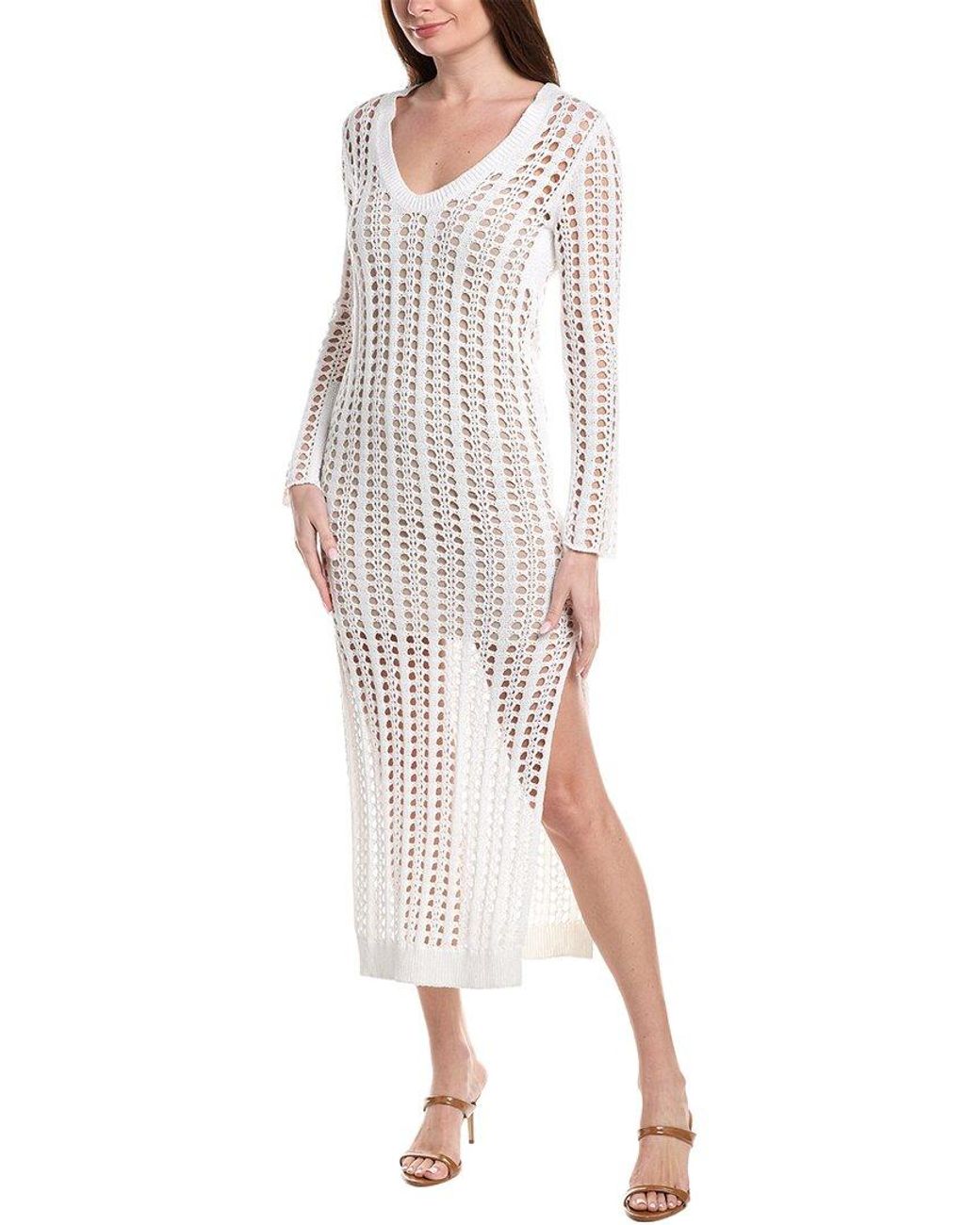 Women's White Knit Linen & Silk-Blend Sweaterdress