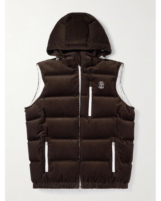 - Logo-Embroidered Quilted Padded Cotton-Corduroy Hooded Down Gilet