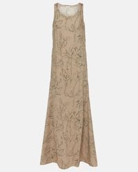 Go to MiintoBrunello Cucinelli maxi dress in a viscose and linen blend, designed with an A-line silhouette and a built-in petticoat for structured drape. Key attributes: Brown | Viscose and linen | Back zip closure