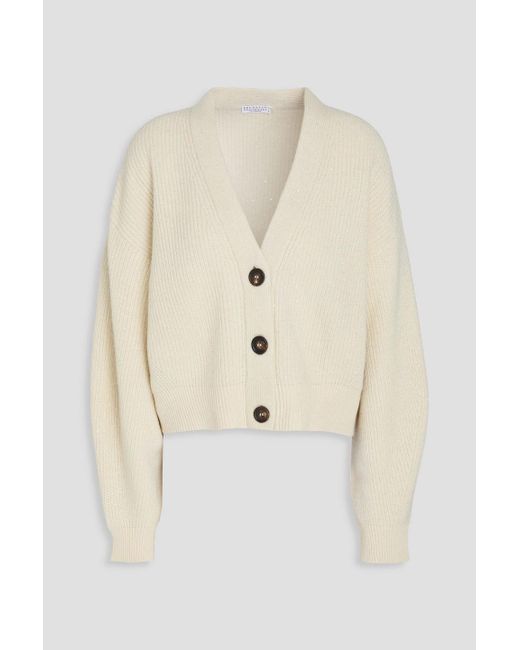 - Metallic Sequin-embellished Ribbed-knit Cardigan