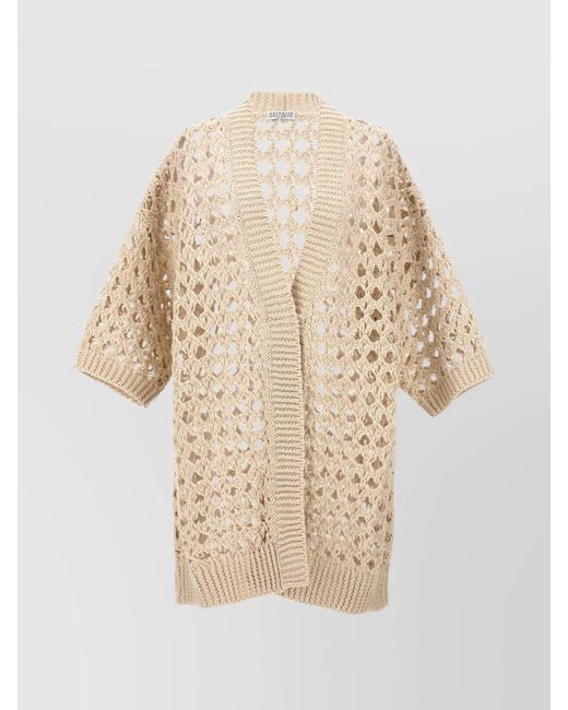 Women's Natural Openwork Knit Cardigan With Mid-Length Sleeves