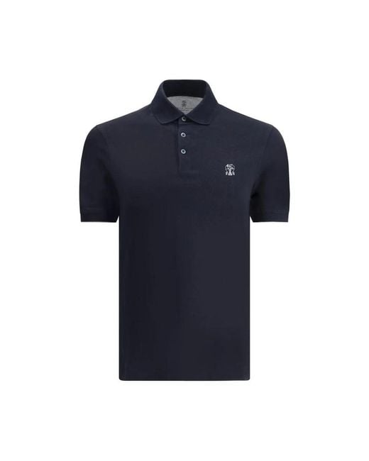 Brunello Cucinelli Classic Polo Shirt Short Sleeve blends a ribbed collar and front button placket with contrasting piping and an iconic logo for a refined everyday polo. Key attributes: Blue | Cotton | Front button placket | Ribbed collar | Short sleeves | Ribbed sleeve cuffs | Contrasting piping | Monochrome pattern | Contrasting brand logo on sleeve | Dimensions & fit: Regular fit | Composition & care: Cotton Colour: blue