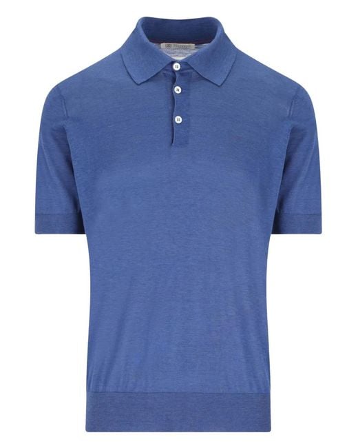 Linen And Cotton Wide Rib Knit Polo - Blue