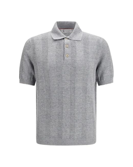 Light grey ribbed knit button fastening polo collar short sleeves Size: 46. Gender: Male. Material:Cotton. Colour: grey