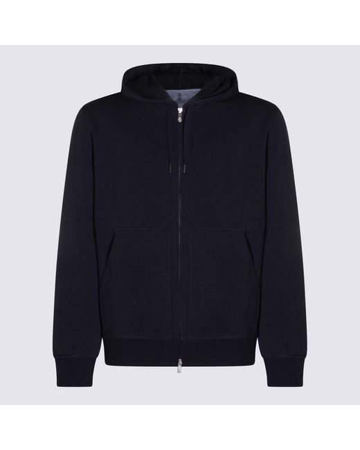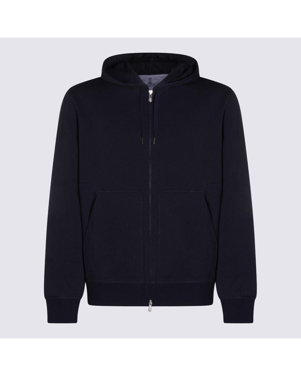 Navy cotton sweatshirt from Brunello Cucinelli featuring hood with drawstring, zip fastening, long sleeves, patch pockets, ribbed cuffs and hem and regular vestibility.Composition: _, 95% Cotton, 5% Polyamide