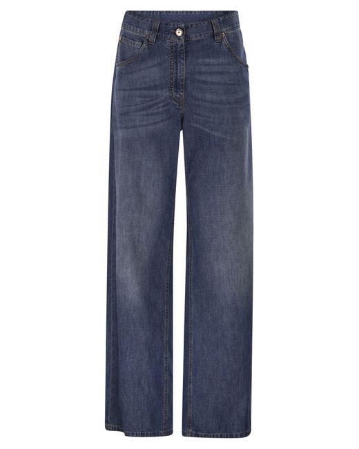 These women's jeans exude casual elegance thanks to their clean construction and high-quality natural materials. Made from pure cotton, the denim fabric has a compact yet comfortable feel, ideal for accompanying movement naturally and ensuring a comfortable fit throughout the day. The wide leg enhances the figure with a harmonious balance between structure and fluidity, while the subtle wash highlights the authentic texture of the denim. The regular waist and front button and zip fastening ensure a classic and versatile fit. Functional details, such as front and back pockets, are complemented by leather appliqués and environmentally friendly brass finishes, reflecting the brand's commitment to responsible materials and manufacturing. A garment designed to complete sophisticated everyday looks, easily paired with light shirts or basic knitwear. - Regular waist - Front button and zip fastening - Wide leg - Front and back pockets - Comfortable fit DESIGNER ID: MH192P4039 C9393SpecificationValueYear2026SeasonSPRING / SUMMERMaterials100% Cotton Application: 100% Leather Application Eco finish brassColorBLUEColor CodeC9393Made InItalyGenderWomenSize FormatIT Colour: blue