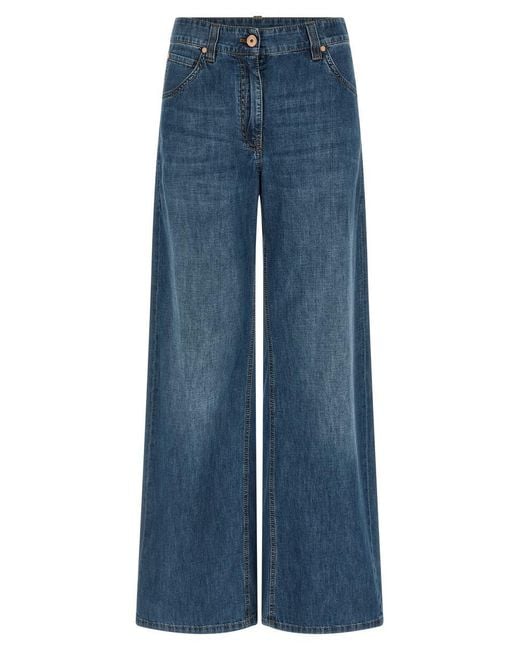 Light stonewashed cotton denim jeans with contrast stitching, wide leg, front zip and button closure, five pockets, Monile detail and leather logo label at the back SizeAndFit: baggy fitGender: WomenMaterial: 100% COTTONColor: BLUEMade in: ItalyProduct ID: MH192P4039C9393*Import tax/duty will be calculated at checkout (If applicable)