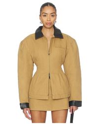 Go to REVOLVEBubish Willow Jacket in Tan. - size 10/M (also in 6/XS, 8/S, 12/L, 14/XL) Bubish Willow Jacket in Tan. - size 10/M (also in 6/XS, 8/S, 12/L, 14/XL) Self: Polyurethane Lining: 100% polyester.