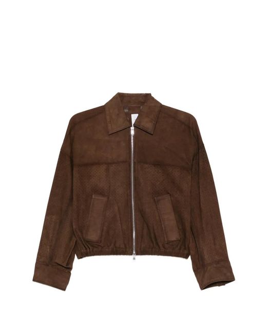 Women's Brown Perforated Zip Leather Jacket