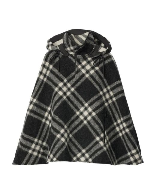 Black check pattern detachable hood drawstring fastening button fastening split sides Size: XS/S. Gender: Female. Material:Wool.