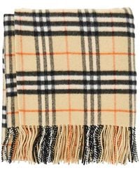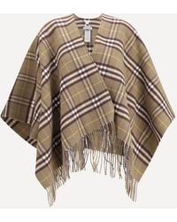 Go to BaltiniSand beige wool and cashmere Burberry cape with all-over Check pattern and decorative fringes at the ends.Gender: WomenMaterial: 90% Lana - 10% CashmereColor: BeigeMade in: ImportedProduct ID: 8102992164786/R_BURBE-A2021*Import tax/duty will be calculated at