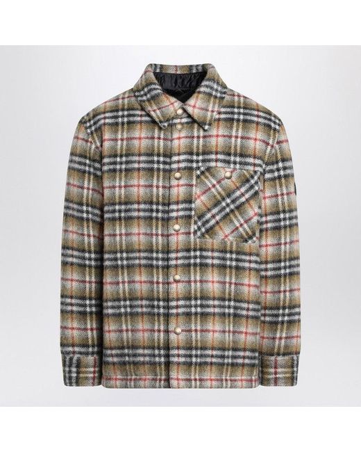 Burberry wool shirt jacket with all-over Check pattern, featuring a front closure with press buttons, an applied chest pocket with press button, long sleeves with one having a logo patch, buttoned cuffs, and a straight hem.SpecificationValueBrandBurberryAge GroupadultColorBeigeMaterialCottonMade InItalyGenderMenSizeLSeasonFW25/26 Colour: multicolour