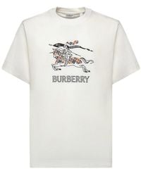 Go to TheDoubleFBurberry blue cotton shirt, featuring a classic collar, long sleeves with buttoned cuffs, front button closure, and embroidered Equestrian Knight Design logo on the chest. Colour: blue