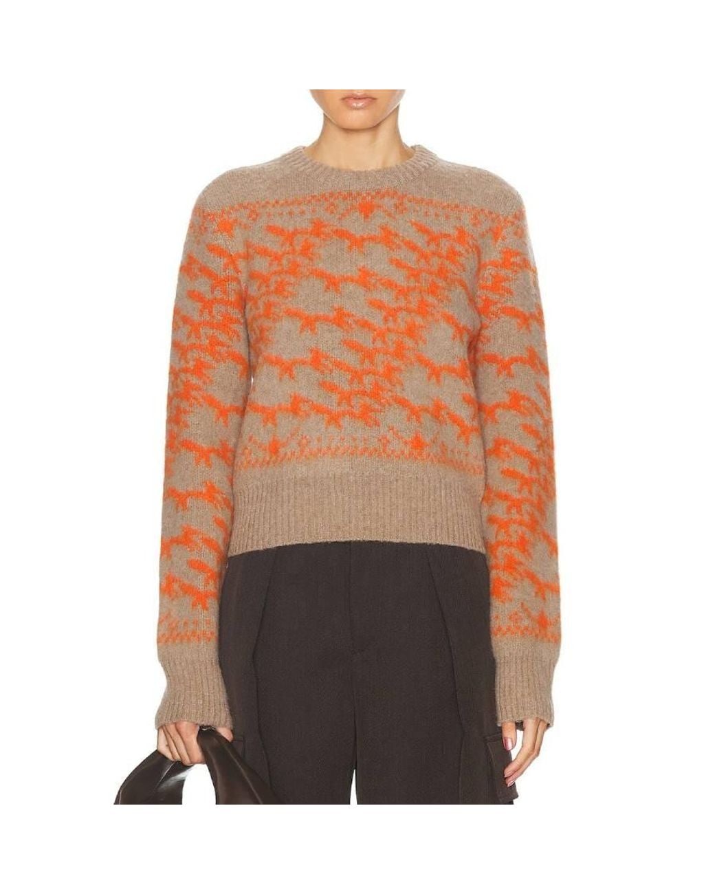 Women's Orange Cropped Fox Jacquard Wool Jumper
