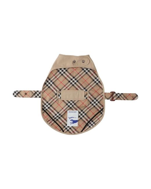 Burberry 'Check' beige cotton gabardine dog coat on one side, and 'Check' pattern on the other, button closure, adjustable buckle belt at the waist, inner logo tag. Colour: natural