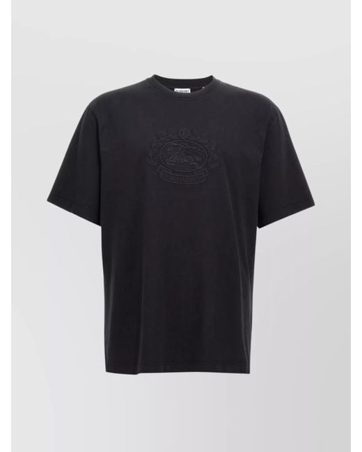 Men's Black Embroidered Logo Crew Neck T-Shirt