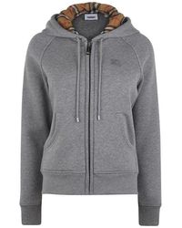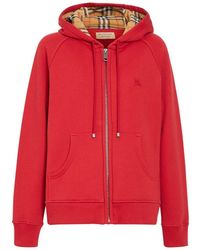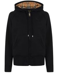 Signature plaid lining defines this comfy hoodie with split kanga pockets. Attached drawstring hood; Long sleeves; Ribbed cuffs and hem; Two-way zip front; Split kangaroo pockets; Cotton/polyester; Dry clean; Made in Portugal; Relaxed fit; About 25" from shoulder to hem; Model shown is 5'10" (177cm) and wearing US size Small.