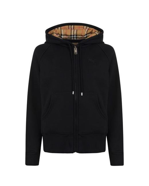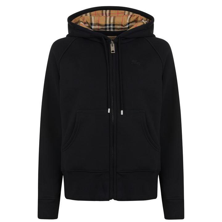 Update your staple casual collection with the logo hooded zip sweatshirt from Burberry. This contemporary piece features a central zip down closure, two pockets and a hooded neckline with drawstring ties. Finished with the brands iconic check print to the hooded lining. Size selection: British Sizing (Standard Sizing) Fits true to size, take your normal sizeRegular fit80% cotton 20% polyester Machine wash at 30 degrees Black 8 (XS). Colour: black