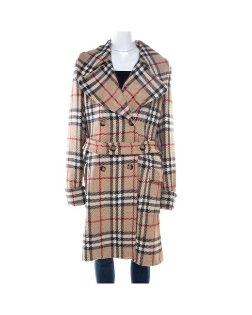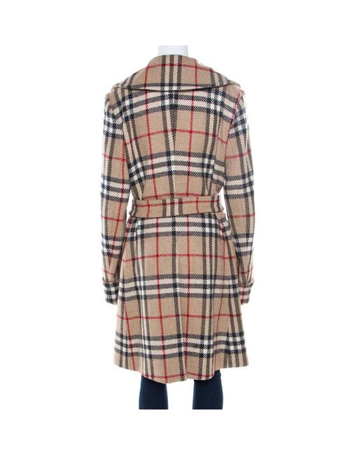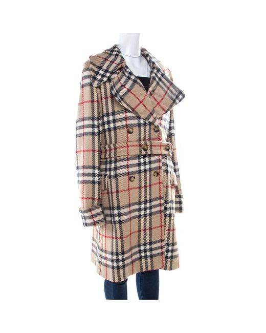 Women's Natural London Beige Checked Wool Double Breasted Belted Blackheath Coat L