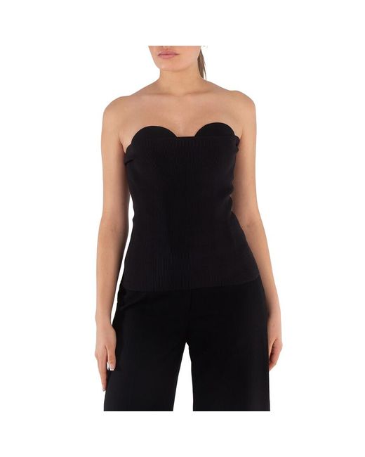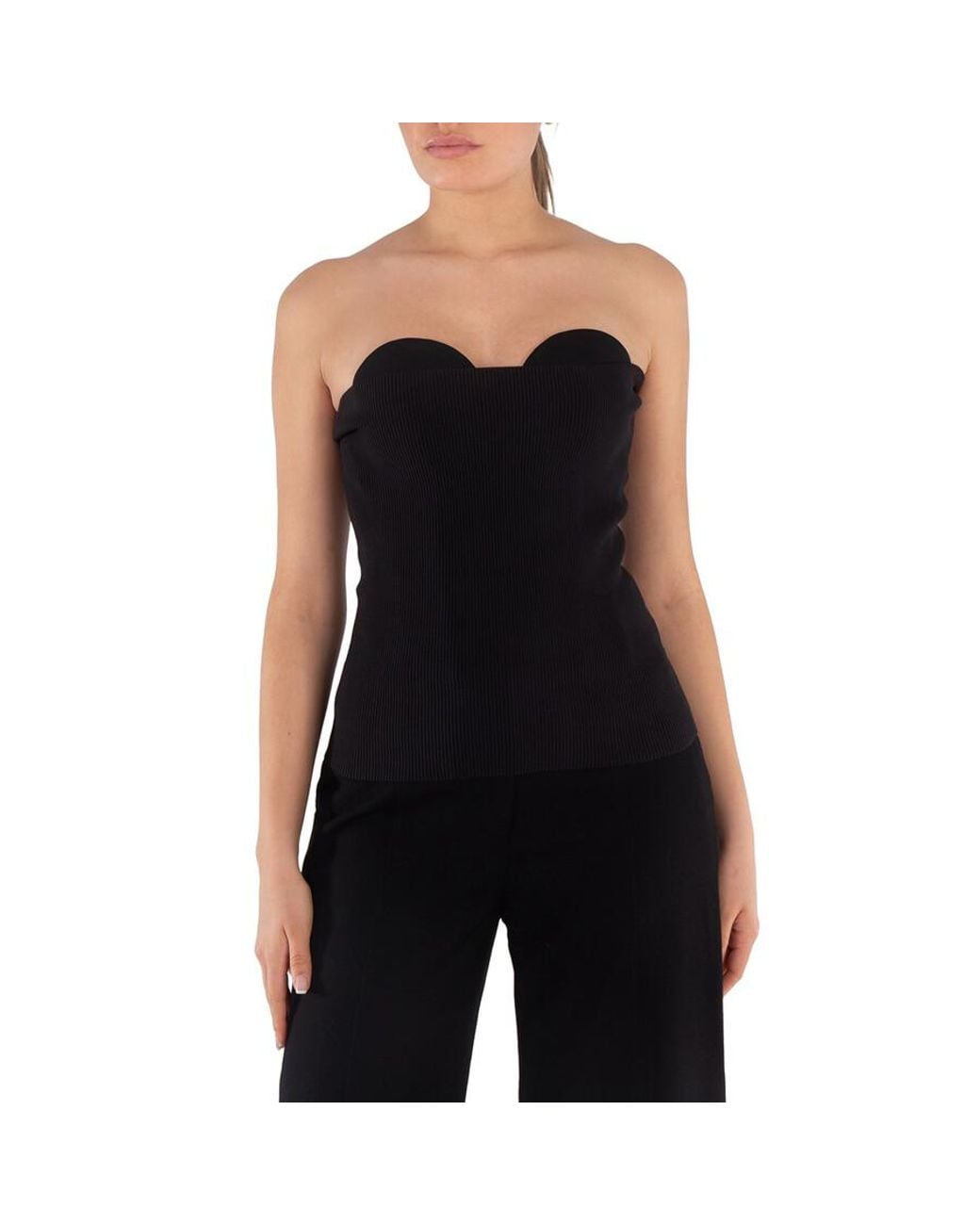 Women's Black Ladies Ribbed Silk-Blend Corset Top