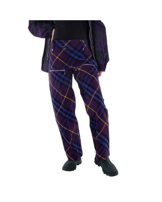 Women's Blue Ribbon Check Tailored Wool Trousers, Brand Size 8 (Us