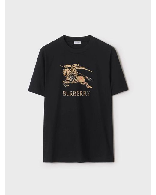 Burberry T-shirt By Burberry• Ribbed finish on the edges• Burberry logo printed on the chest• Made from cotton fabric• Short-sleeved T-shirt• Round neck• Composition: 100% cotton• Made in: PortugalGender: MenMaterial: 100% COTTONColor: BlackMade in: PortugalProduct ID: 8119013_A1189BLACK*Import tax/duty will be calculated at checkout (If applicable) Colour: black