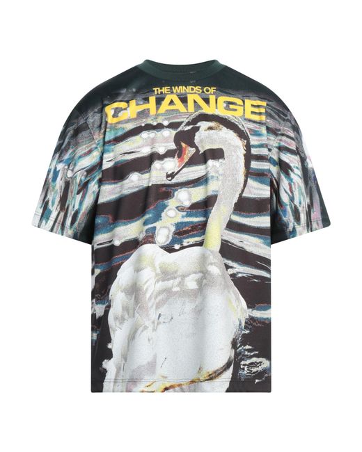 Graphic Print Crewneck Cotton T-Shirt - Green