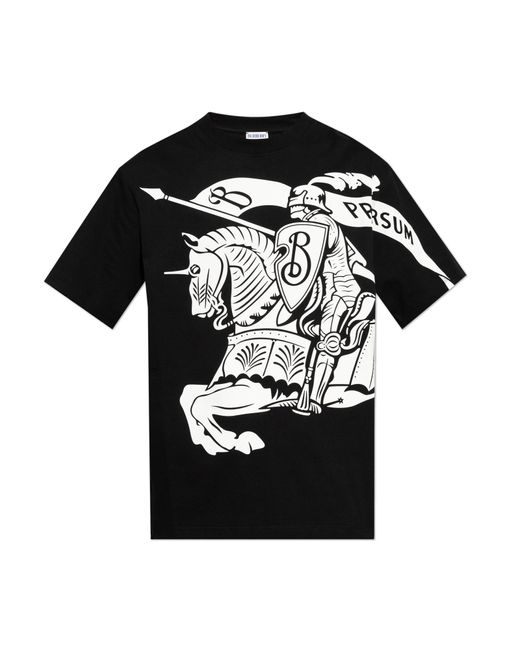 BURBERRY brand. This black tee, featuring a round neckline, is crafted