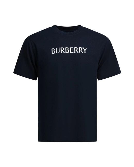 Burberry Cotton T-shirt with logo blends a clean crew-neck silhouette and an embossed screen-printed logo for elevated everyday wear. Designed for lightweight comfort, it works well as a polished casual staple. Key attributes: Blue | Cotton | Lightweight fabric | Ribbed crew neck | Short sleeves | Embossed screen-printed front logo | Dimensions & fit: Regular fit | Composition & care: 100% cotton | Machine wash Colour: blue
