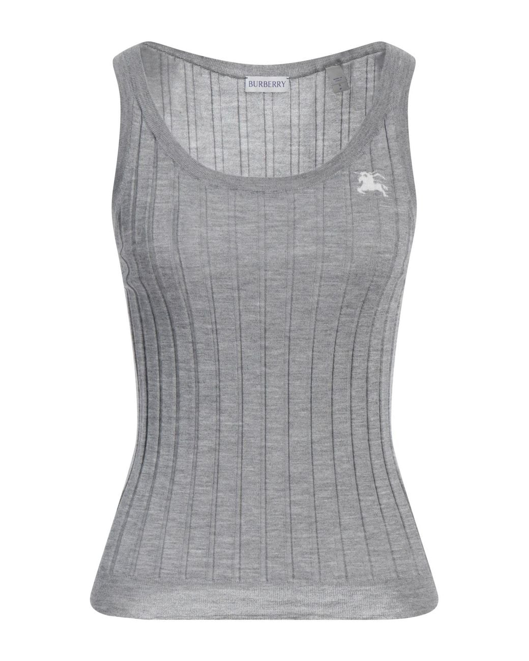 BURBERRY. top, cashmere, lightweight knit, mélange, brand logo, scoop neckline, sleeveless, dry clean, do not bleach, do not tumble dry, do not iron. 100% Cashmere. Colour: grey