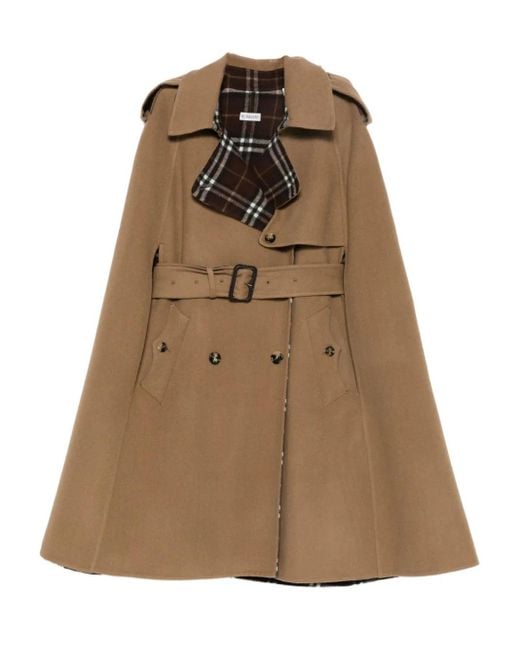 Reversible Wool Cape With Check Motif And Frayed Hem - Natural