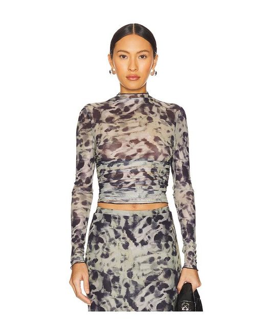 BY.DYLN Nina Top in Grey. Size L. Also in XS, S, M. BY.DYLN Nina Top in Grey. Size XS, S, M. 95% polyester 5% elastane. Made in China. Dry clean recommended. Ruffled neckline. Ruched seams. Lightweight mesh fabric. Garment is intentionally sheer, undergarments will show through. Please note undergarment not included. Item not sold as a set. BYDR-WS106. DL3034. BY.DYLN dresses the open-minded, strong, and independent woman who isn't afraid to push boundaries. Not one to be conventional, her expressive style gives off a bit of teasing attitude. Core track essentials, signature ribbing, slouchy 90s cuts and form-fitting silhouettes make up BY.DLYN's collection, all rooted in the brand's DNA: feminine designs with a touch of masculine energy.